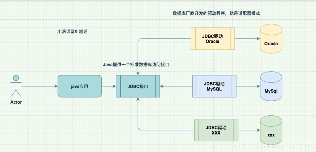 就是⼀个介于JDBC接⼝和数据库引擎接⼝之间的适配器软件