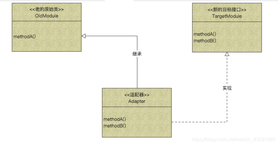 然后通过类的适配器,进行适配OldModule和TargetModule,这样就可以做到将⼀个类转换成满⾜另⼀个新接⼝的类,且不改动原有类~